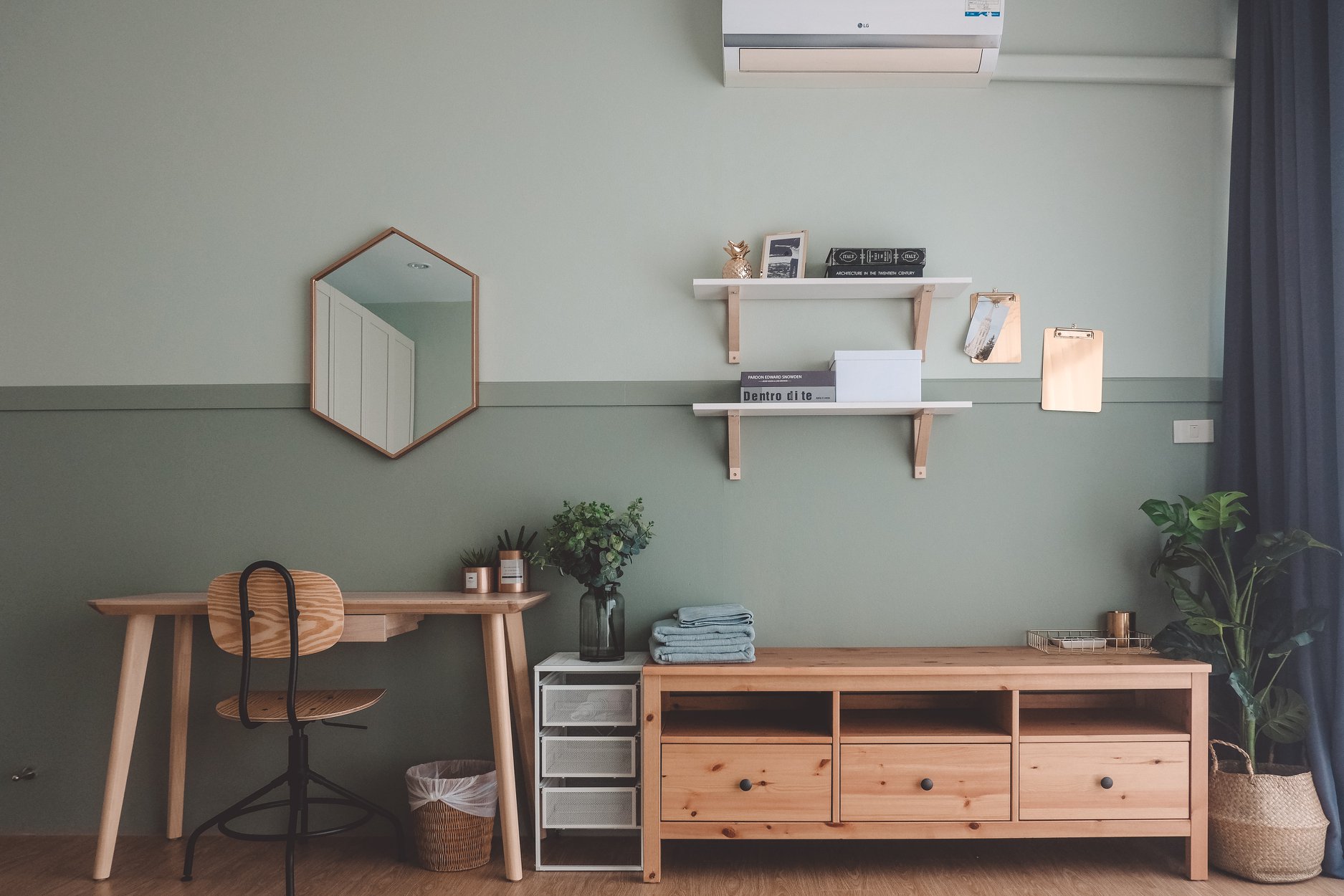 ห้องนอนด้านบนมีทั้งหมด 2 ห้องด้วยกัน ซึ่งทั้ง 2 ห้องแต่งเป็น 2 โทน คือสีสว่างกับสีมืด เลือกกันได้ตามความชอบเลย