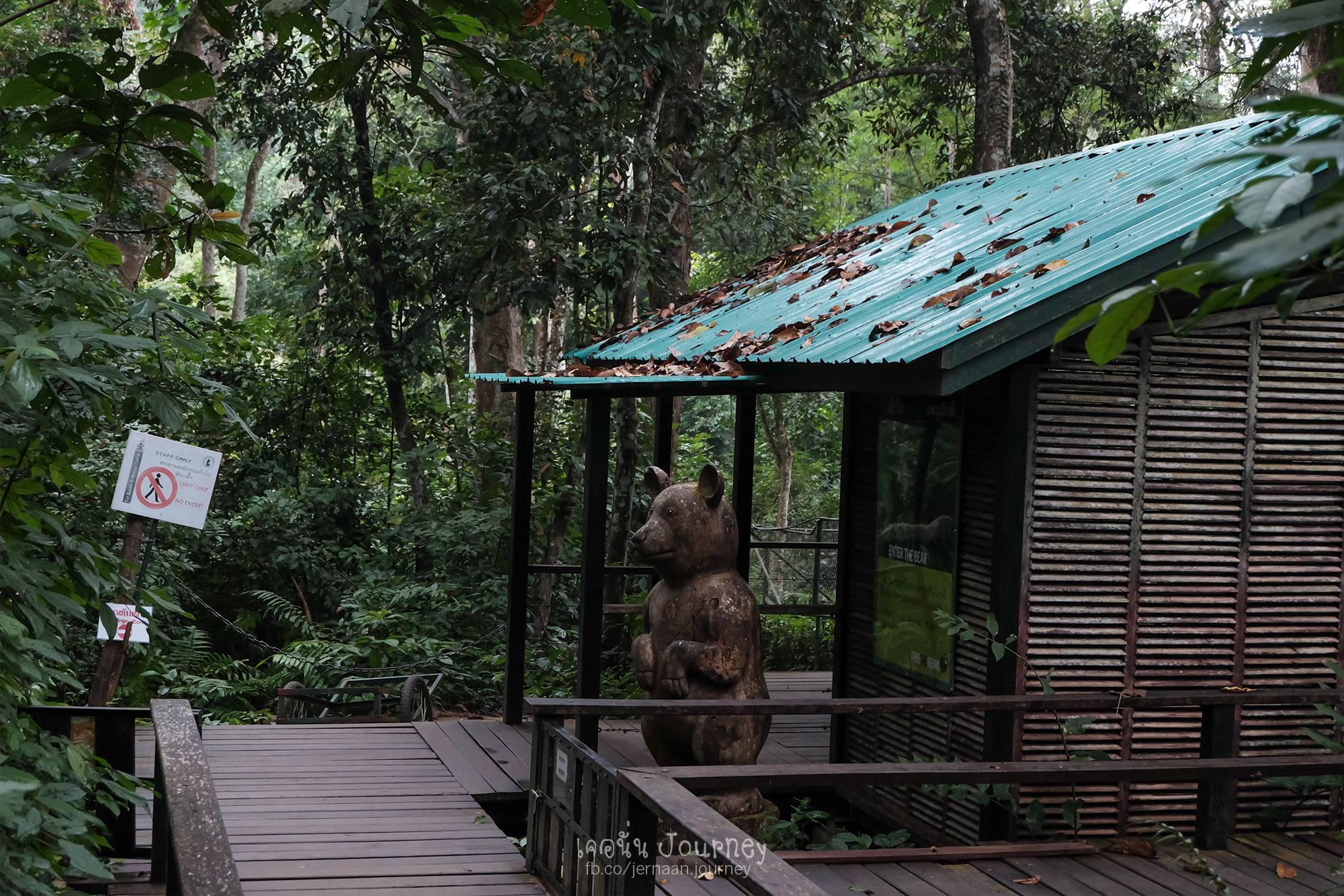 ด้านในตรงทางเดินไปน้ำตกมีหมีมากมายที่เขาอนุรักษ์ไว้ บรรยากาศร่มรื่น ถ่ายรูปสวยงาม