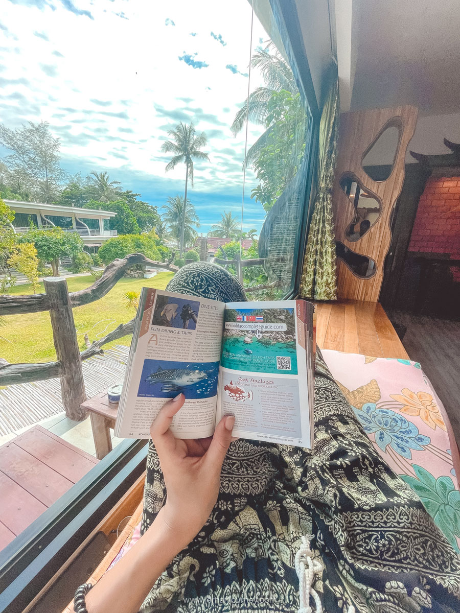ตอนกลางวันแอดมินชอบมานั่งดูทะเลสีฟ้าสดใส มองออกไปจากตัวร้าน คือทะเลสวยมากจริง ๆ ส่วนตอนเย็น ๆ เหมาะมากกับการมานั่งชิลล์ รับลม ดูพระอาทิตย์ตก นอนฟังเสียงคลื่น ตอนที่อยู่เกาะเต่า แอดมินมาที่นี่บ่อยมาก ทั้งตอนที่พักที่นี่และตอนที่ไม่ได้พัก