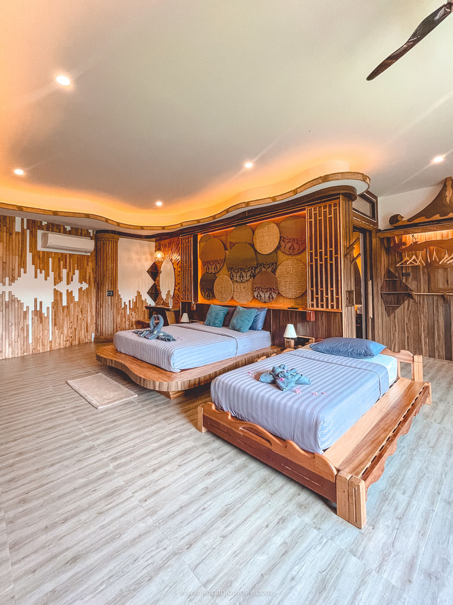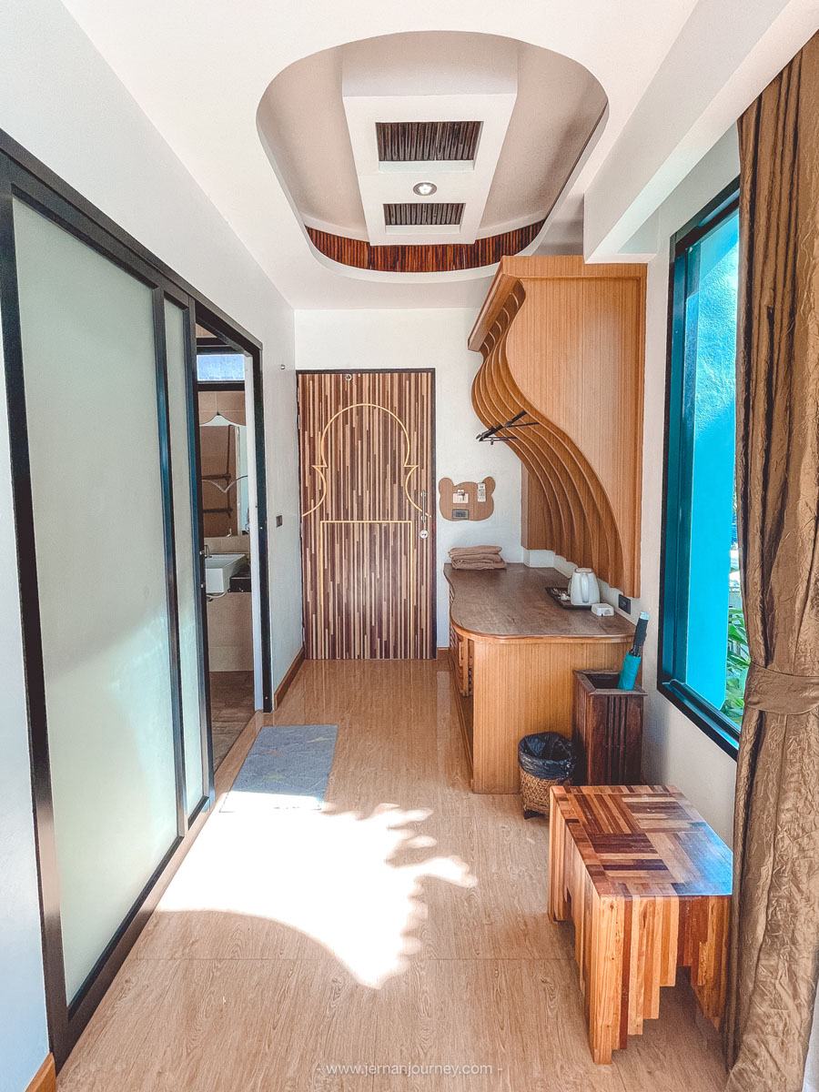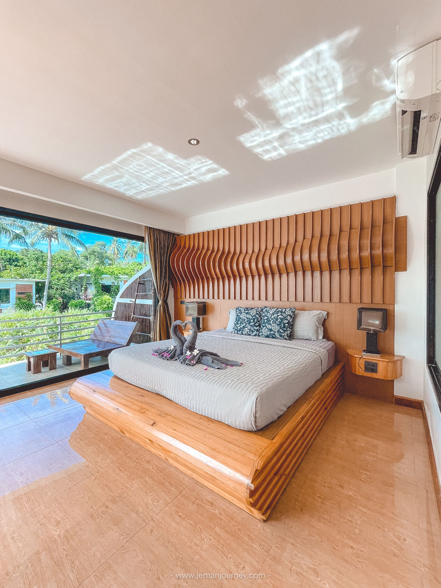 #RoomType There are 3 main room types – Deluxe (Sea View, Sea Side & Balcony), Villa (Garden & Family), and Family Sea Side and Junior Suite. Each room has been decorated in unique and different styles even though those rooms are the same type. One thing in common for every room is that they use curvy furniture like the ocean waves so that you can feel at ease and relax. The room rates can be per day or per month. Doubtless that many people who take dive master or dive instructor courses would stay here.