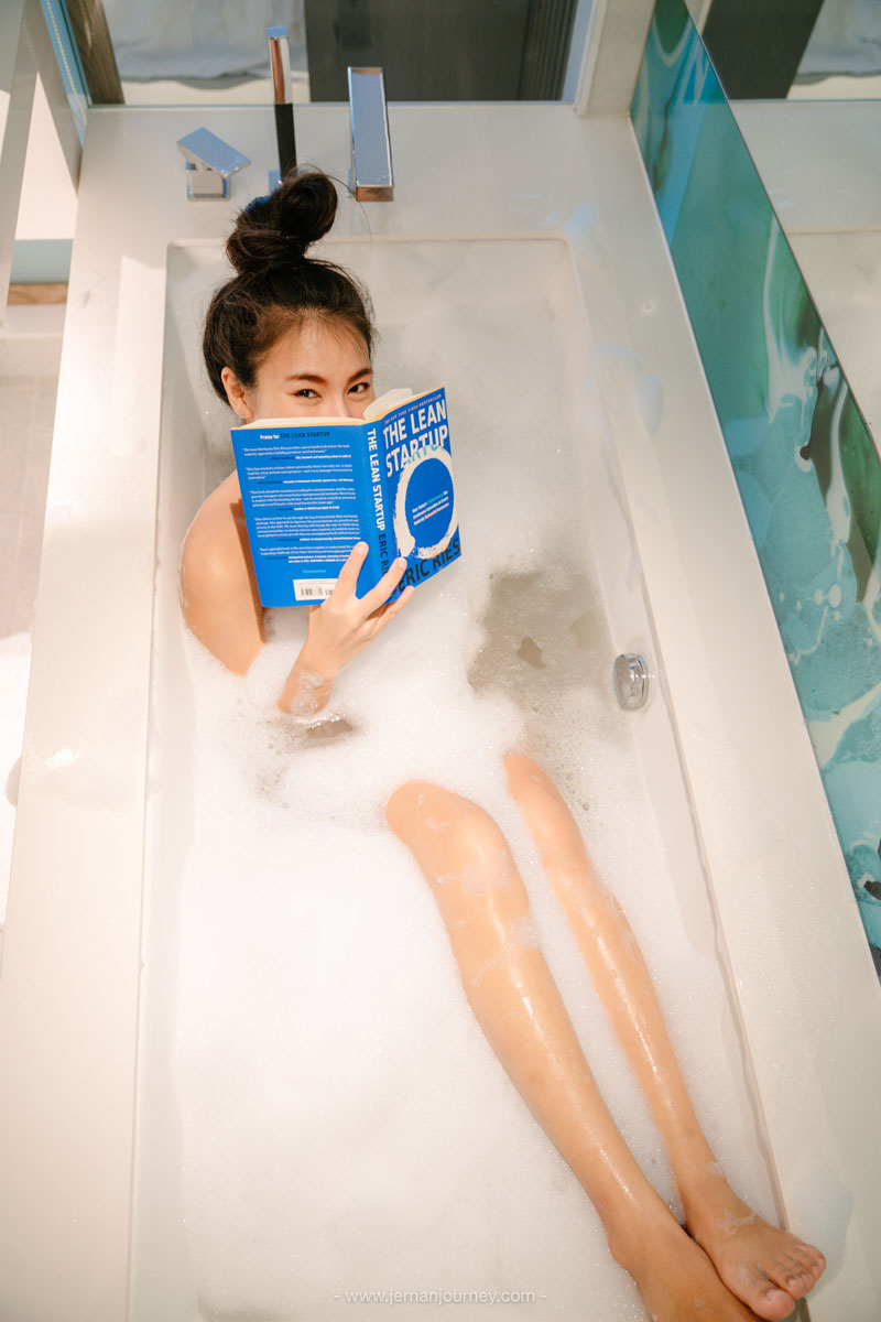 และความพิเศษของห้องนี้คือ อ่างอาบน้ำ เช็คอินเสร็จก็แช่น้ำคลายร้อนได้เลย และฝาห้องน้ำที่เป็นบานกระจก สามารถเลื่อนซ้ายขวาได้ ช่วยให้ห้องดูโปร่งสบาย กว้างขวางขึ้นไปอีก แถมภายในห้องพัก ยังมีมุมให้นั่งเล่นและมีผลไม้สดเสิร์ฟให้เราได้ทานเป็นของว่างอีกด้วย