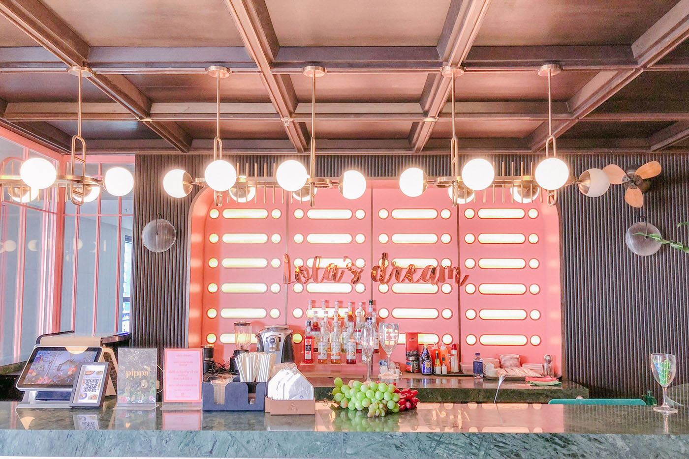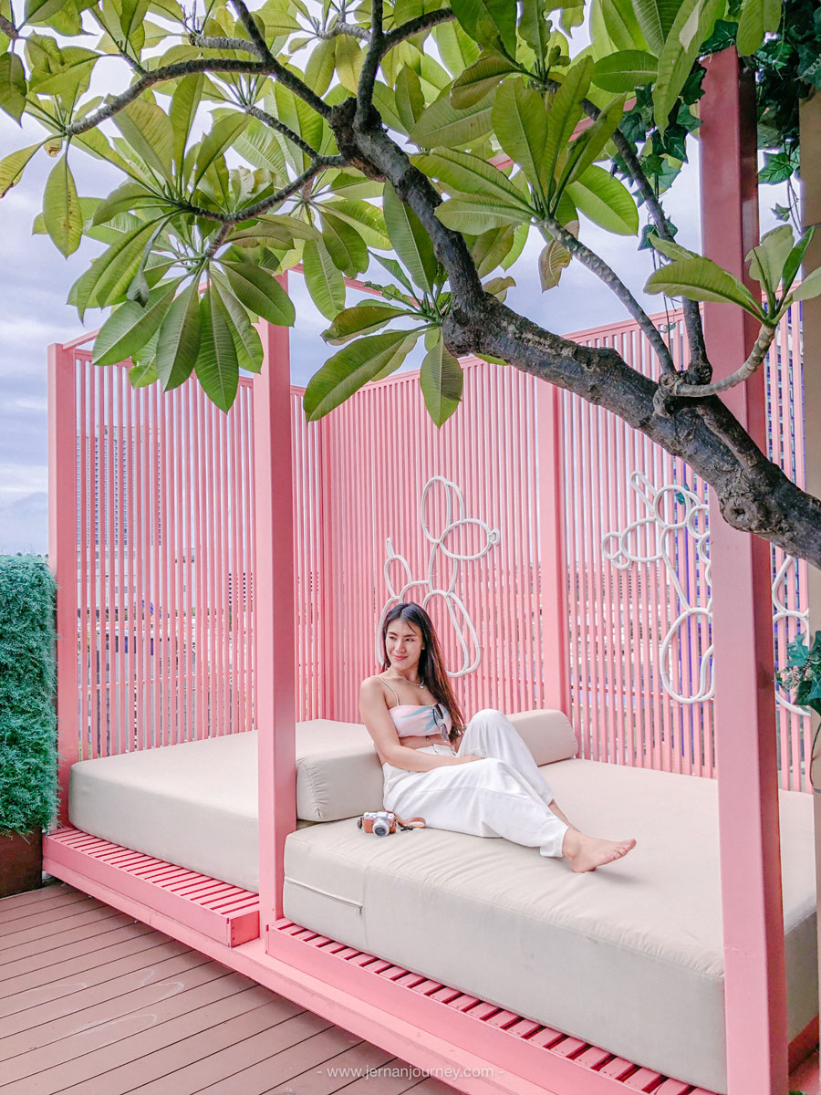 ที่ชั้น 12 ของโรงแรมมีคาเฟ่สีชมพูเอาใจสายหวานชื่อ Lola’s Dream ตอนเช็คอิน Reception จะให้คูปอง Welcome Drink มา แล้วสามารถนำมาแลกที่ชั้นนี้ได้ ที่ Lola’s Dream มีมุมให้ถ่ายรูปเพียบบบบบบบบบบบบ ทั้งโซน indoor และ outdoor และที่สำคัญมีสระว่ายน้ำลอยฟ้า ที่สามารถแช่น้ำไป ดูพระอาทิตย์ตกไป ฟินสุด ๆ ตอนกลางคืนที่นี่เค้าก็เปิดไฟเป็นรูปคลื่นทะเลด้วยนะ โดย Lola’s Dream จะเปิดตั้งแต่ 10.30 น. ไปจนถึง 20.00 น. ไปเลย ใครที่ไม่ได้พักที่นี่ จะขึ้นมาดื่มเครื่องดื่มหรือทานของว่างที่นี่ ก็ได้เช่นกันนะ