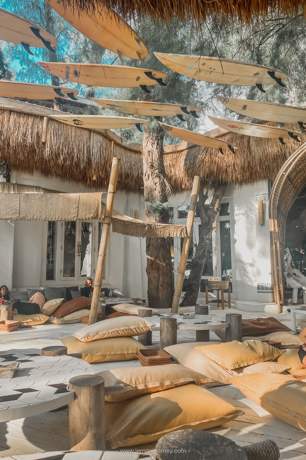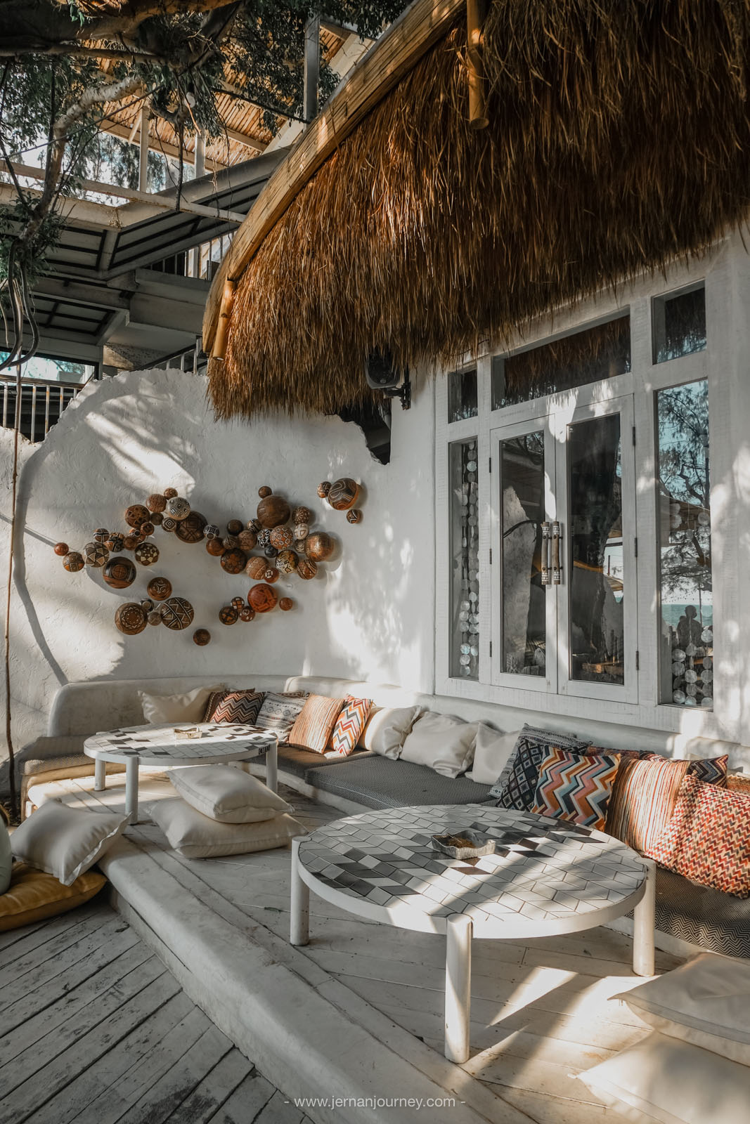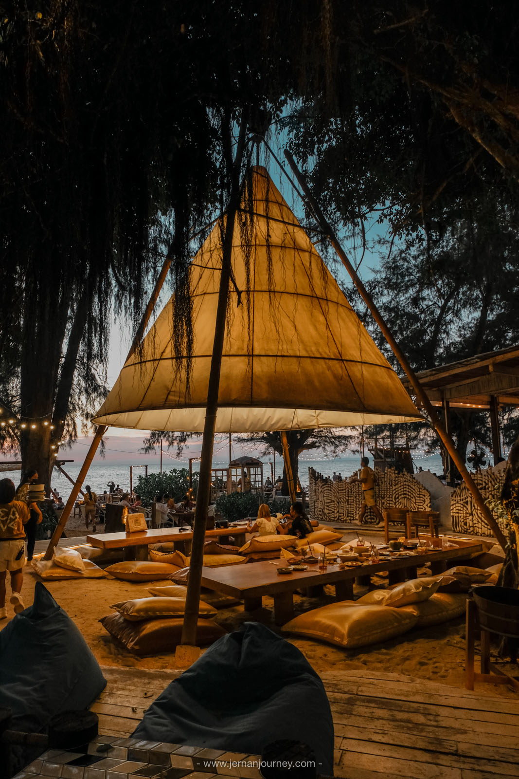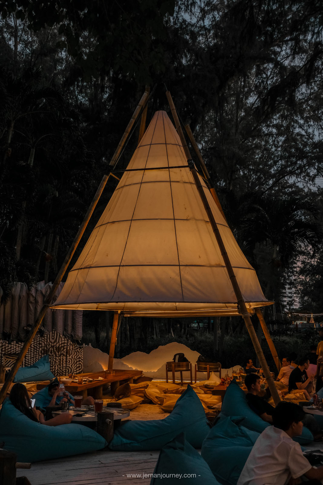 มีโต๊ะให้เลือกนั่งหลายแบบ โดยส่วนใหญ่จะเน้นเป็นที่นั่งบีนแบคชิลๆ ในร้าน หรือจะนั่งบีนแบครับลมทะเลหน้าหาดก็ได้