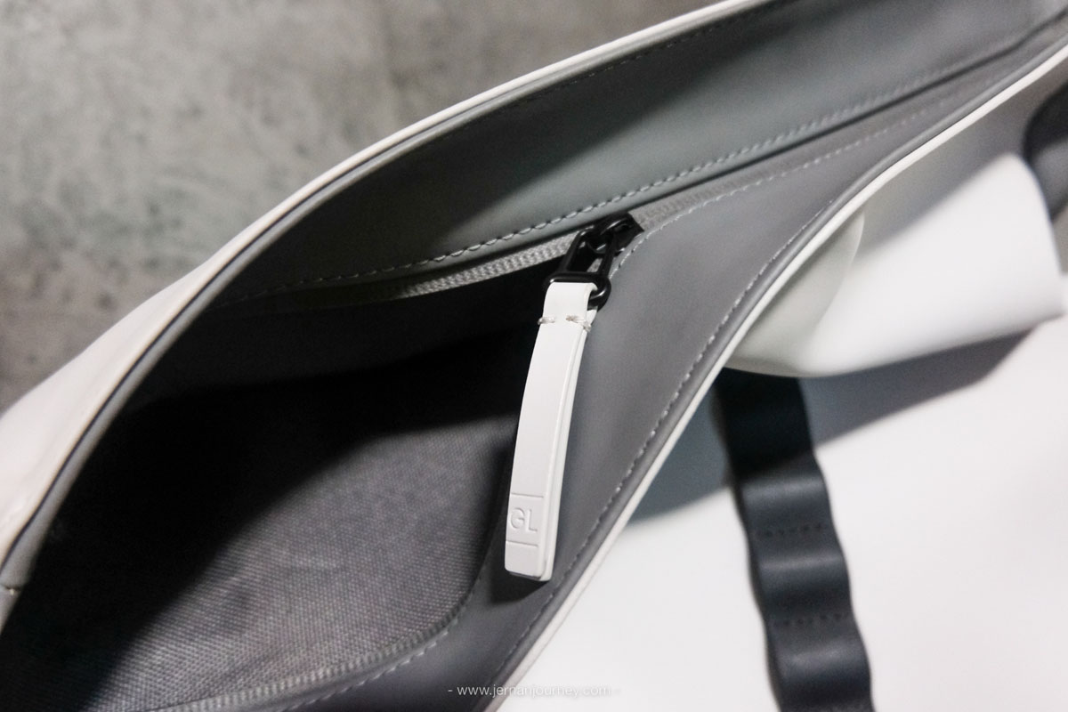 รุ่นนี้มีช่องซิบด้านหน้าอีก 2 ช่อง และที่แตกต่างจากรุ่นก่อนที่เคยใช้ก็คือด้านล่างมีหมุดที่เป็นขาตั้งสำหรับวางด้วย ทำให้ตัวกระเป๋าไม่สัมผัสพื้นโดยตรง ทำให้ตัวกระเป๋าไม่ค่อนเปื้อนแล้วก็ช่วยยืดอายุการใช้งานได้ดีเลยทีเดียวแหละ