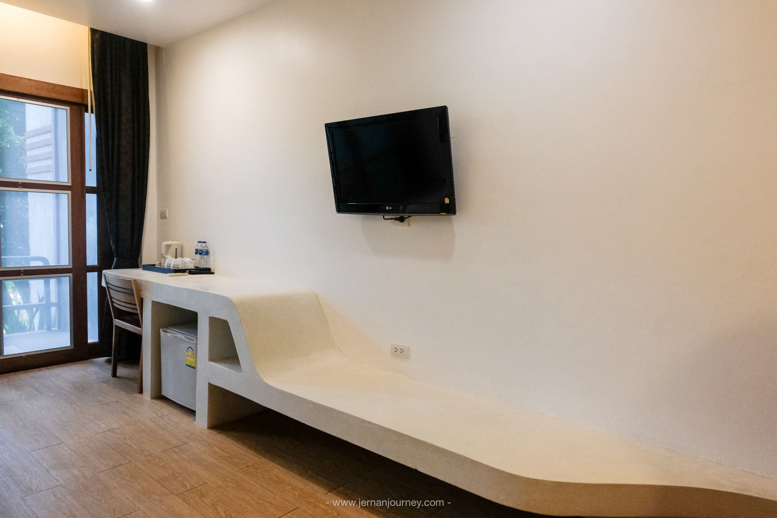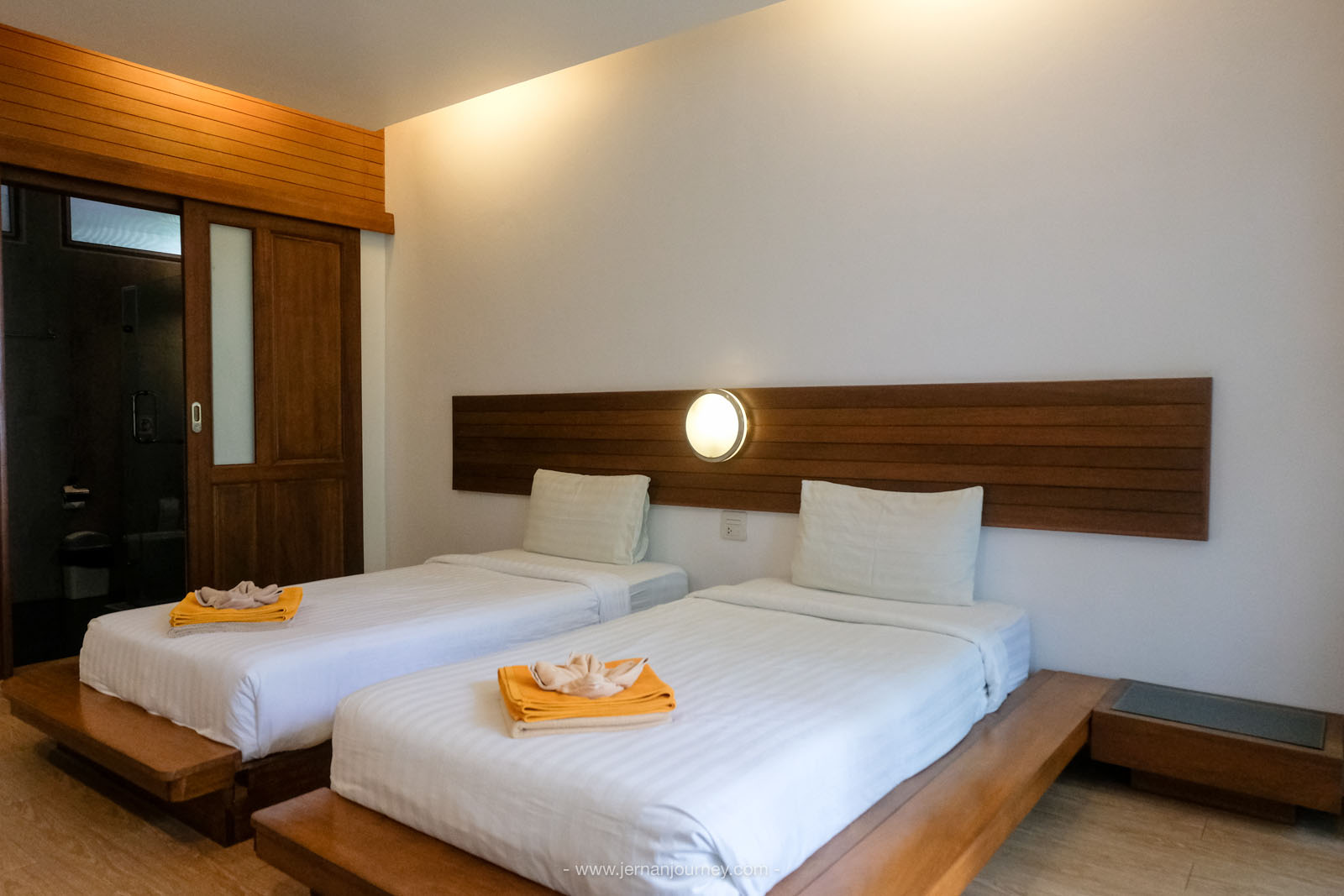 ห้องที่เราพักจะอยู่บนตึกโซนล่าง เดินนิดเดียวถึงห้องอาหาร สระน้ำ และหาดเลย ห้องกว้างมาก หันหน้าเข้าทะเล มีสิ่งอำนวยความสะดวกครบครัน