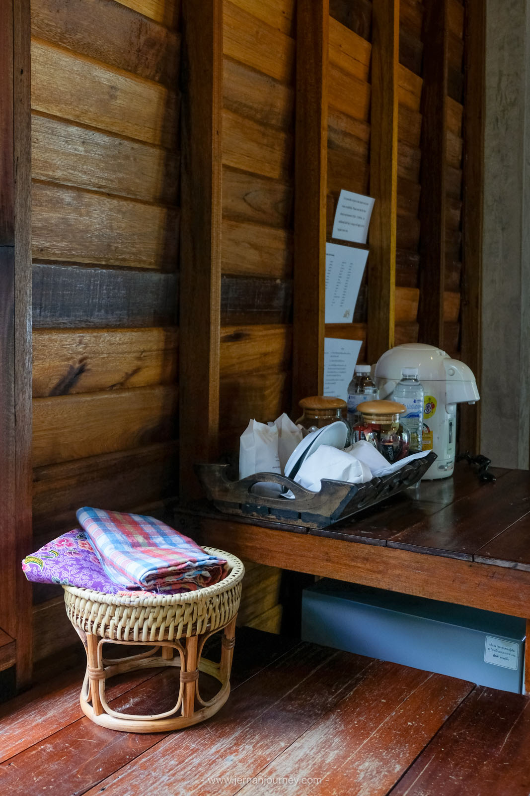 ในห้องพักก็มีสิ่งอำนวยความสะดวกครบครัน ไม่ว่าจะเป็นไดร์เป่าผม กาต้มน้ำร้อน ชา กาแฟ จาน สบู่ แชมพู ชุดคลุมอาบน้ำ รองเท้า ร่ม รวมไปถึงมีเสื่อและผ้าขาวม้าให้ยืมเป็นพร้อพด้วย ประทับใจสุด
