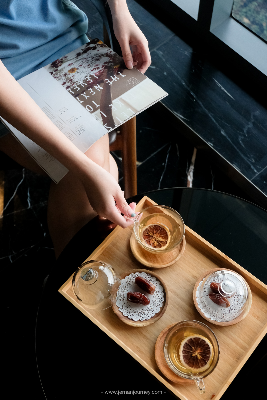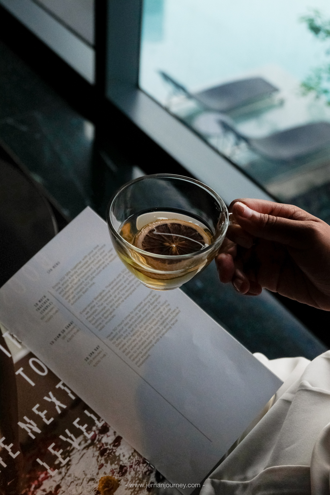 พนักงานเข้ามาต้อนรับด้วยน้ำอัญชัน พร้อมผ้าเย็น นั่งพักพอหายเหนื่อย ก็ถึงเวลาทำสปาของเราแล้ว ทางพนักงานจะแนะนำให้รู้จักกับ Therapist ของเรา และแนะนำทรีตเม้นต์ที่เราต้องทำอีกครั้ง