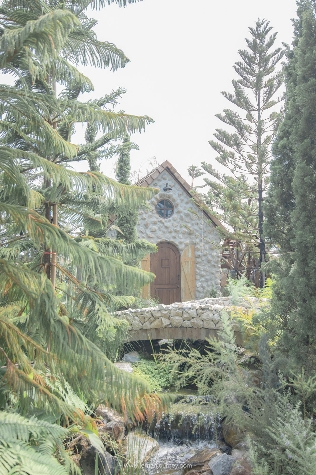 🍂 สวนของที่นี่จัดเป็นสไตล์ยุโรป พร้อมกับสถาปัตยกรรมตกแต่งคล้ายกับเมืองเล็กๆ ย่านชนบท มีมุมถ่ายรูปยอดฮิตเป็นสะพานหินแล้วเห็น Cottage ด้านหลัง