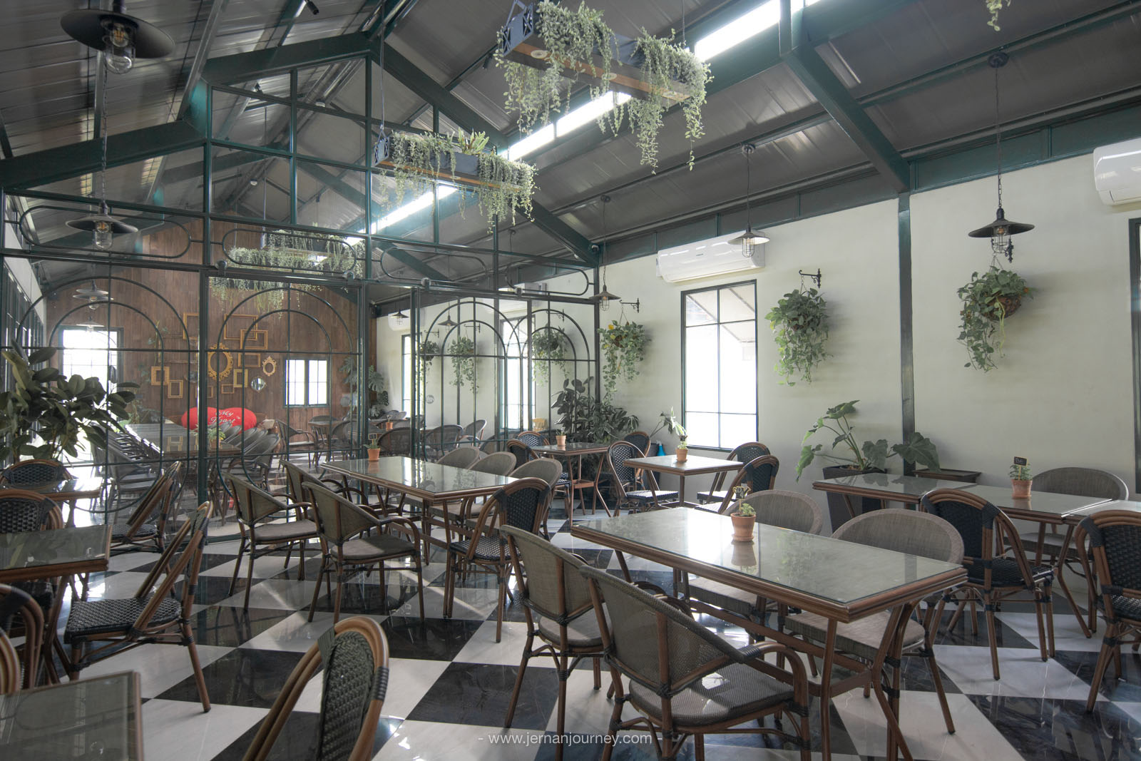 🏡 ส่วนโซน Indoor จะเป็นเรือนกระจก หลังคาสูงโปร่ง เป็นห้องแอร์ มีตั้งโต๊ะสูง โต๊ะเตี้ย โต๊ะบาร์