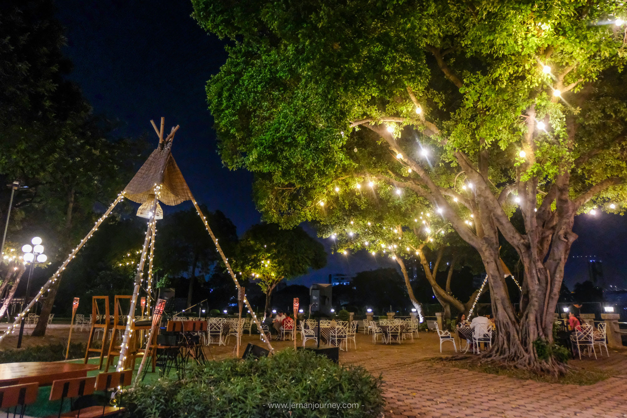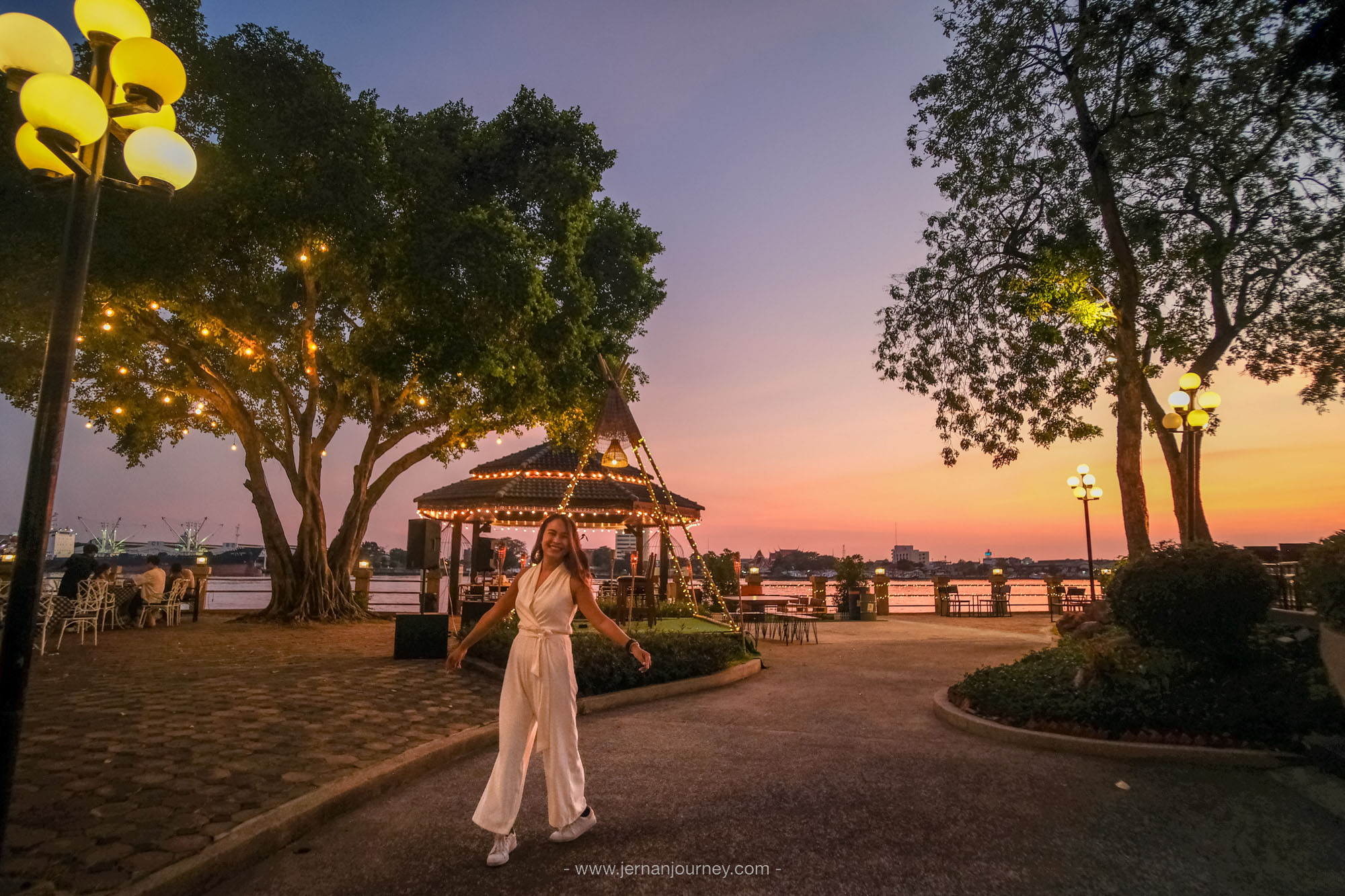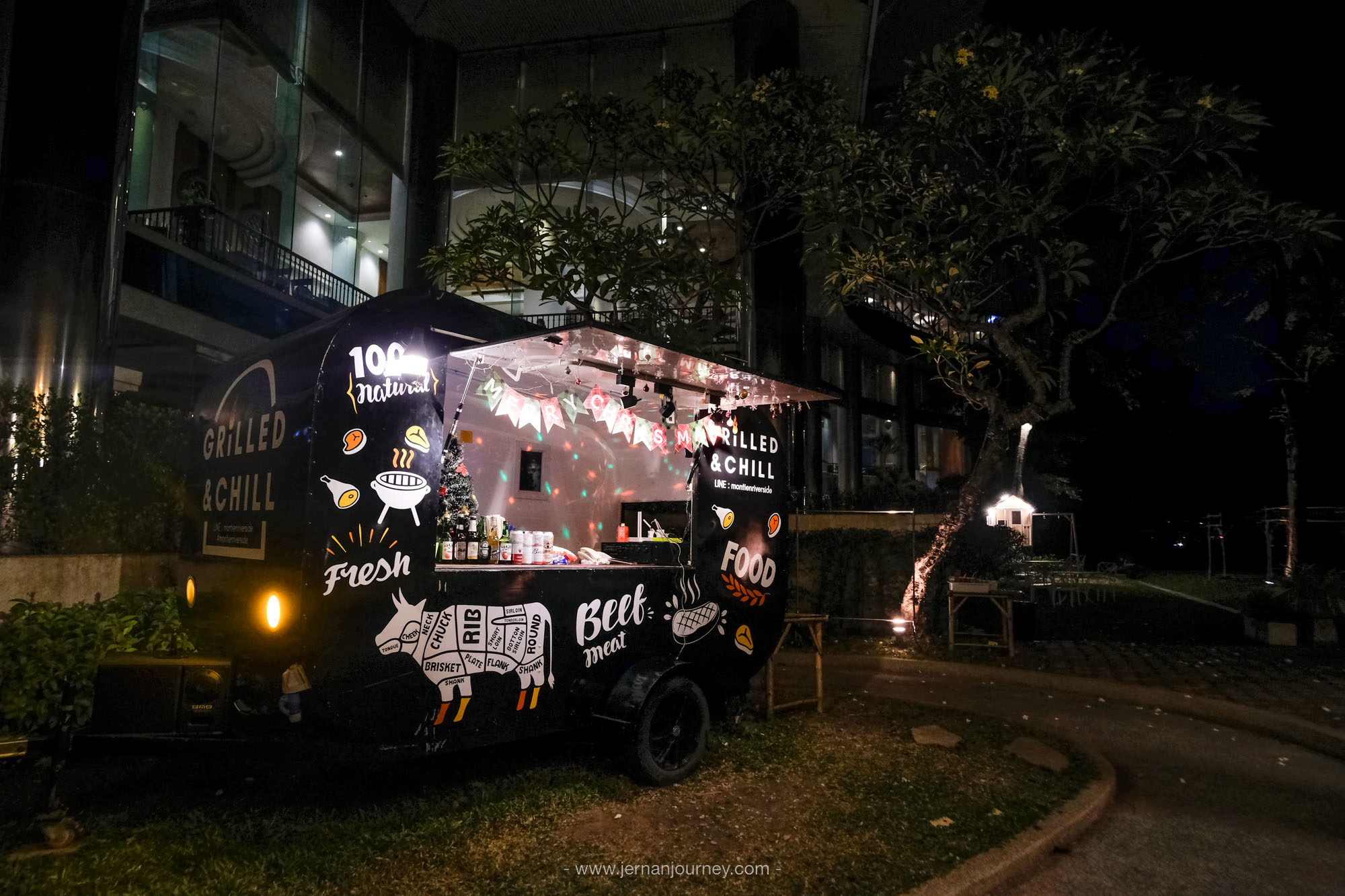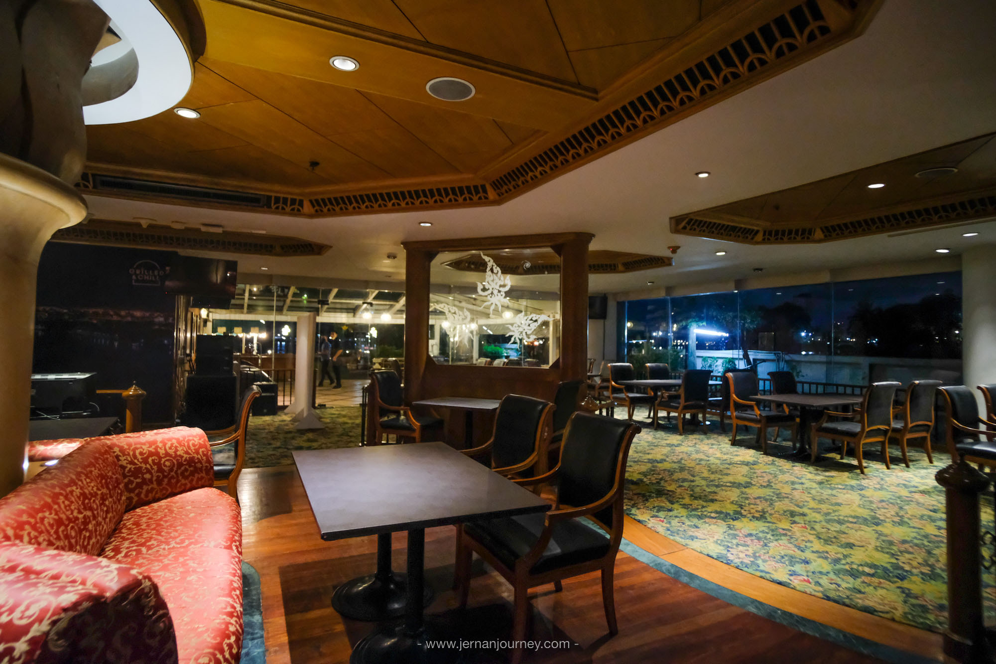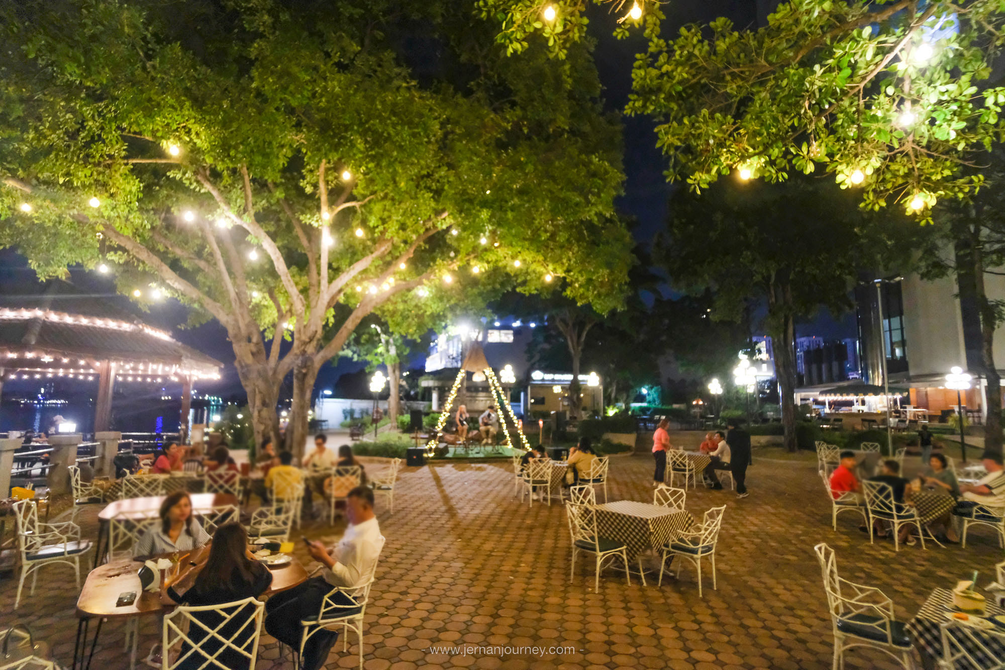 สำหรับ Grilled and Chill ตรงนี้เป็นลานกว้างติดริมแม่น้ำเจ้าพระยา สามารถนั่งรับลม ดูพระอาทิตย์ตก และอยู่ยาวๆ ฟังดนตรีสดเพลินๆ ในช่วงค่ำๆ ได้เลย