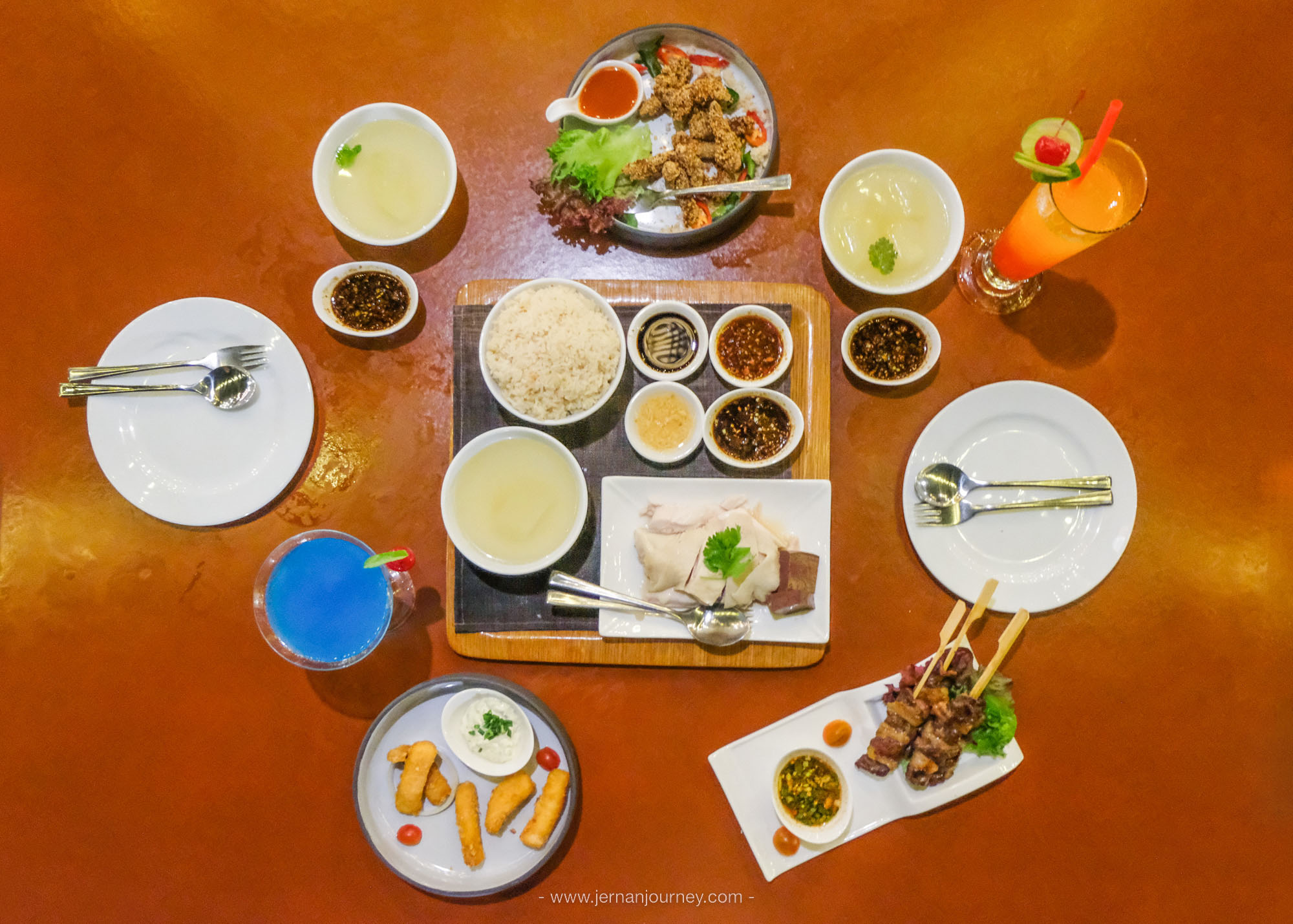 #อาหาร สำหรับที่นี่ต้องพูดถึงเมนูอาหารขึ้นชื่ออย่าง “ข้าวมันไก่มนเฑียร” อร่อยสมชื่อ เรียกว่าเป็นเมนูเด็ดที่ห้ามพลาดเลย มีเสิร์ฟที่ The Cafe ในช่วงกลางวัน และ Grilled and Chill ริมแม่น้ำเจ้าพระยาในช่วงเย็น