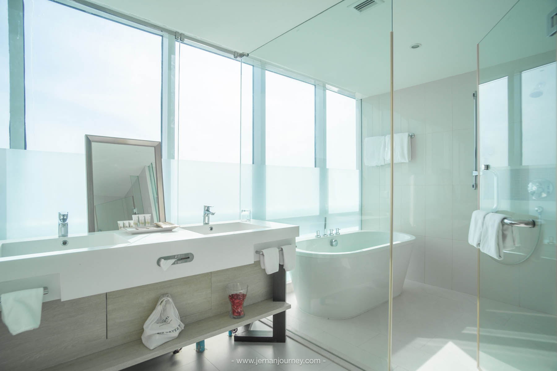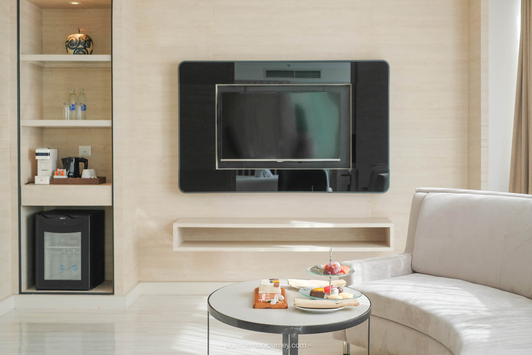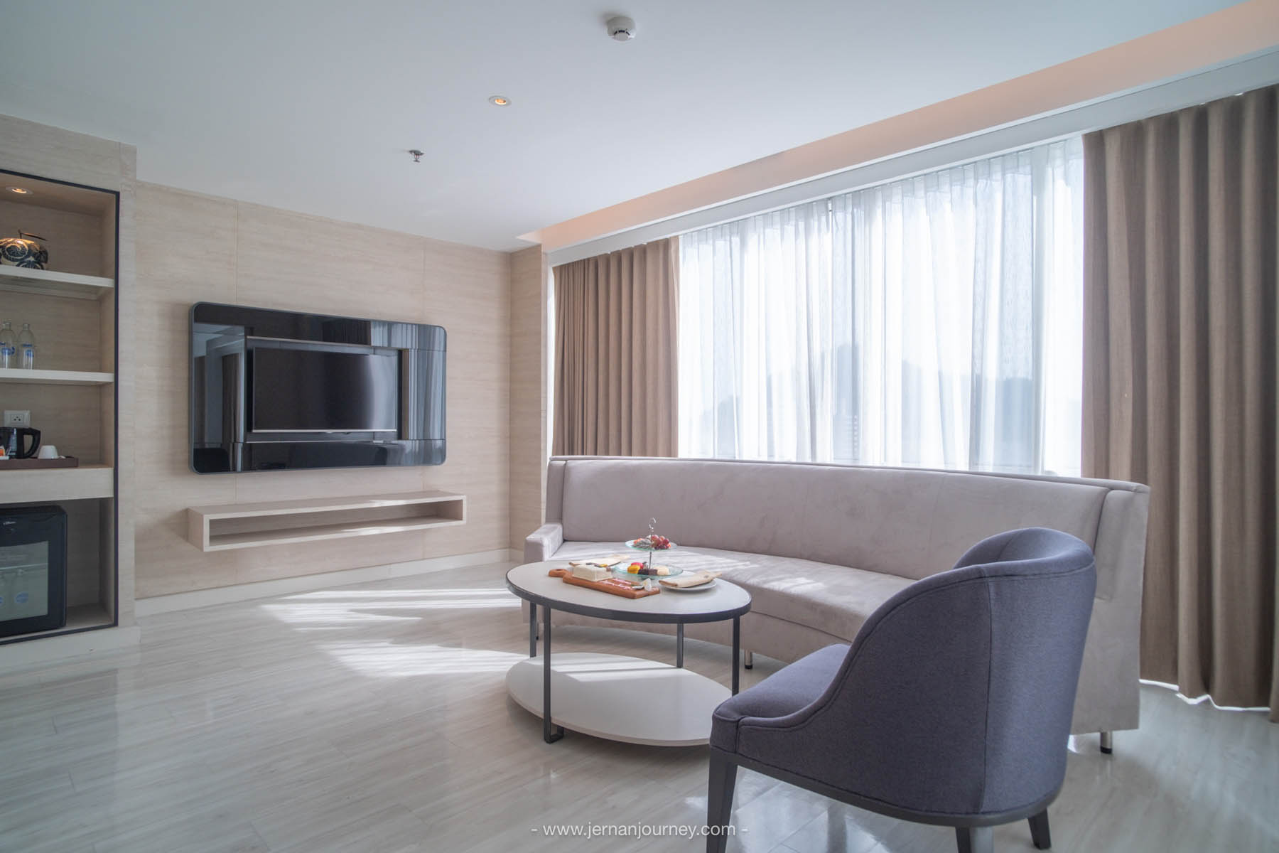 ห้องพักกว้างขวาง แบ่งเป็นมุมโต๊ะทำงาน ห้องนั่งเล่น ห้องนอน และห้องน้ำ พร้อมอ่างอาบน้ำในตัว เตียงนอนของที่นี่ออกแบบมาเฉพาะในสไตล์ Live N Dream ตามแบบฉบับของ Novotel