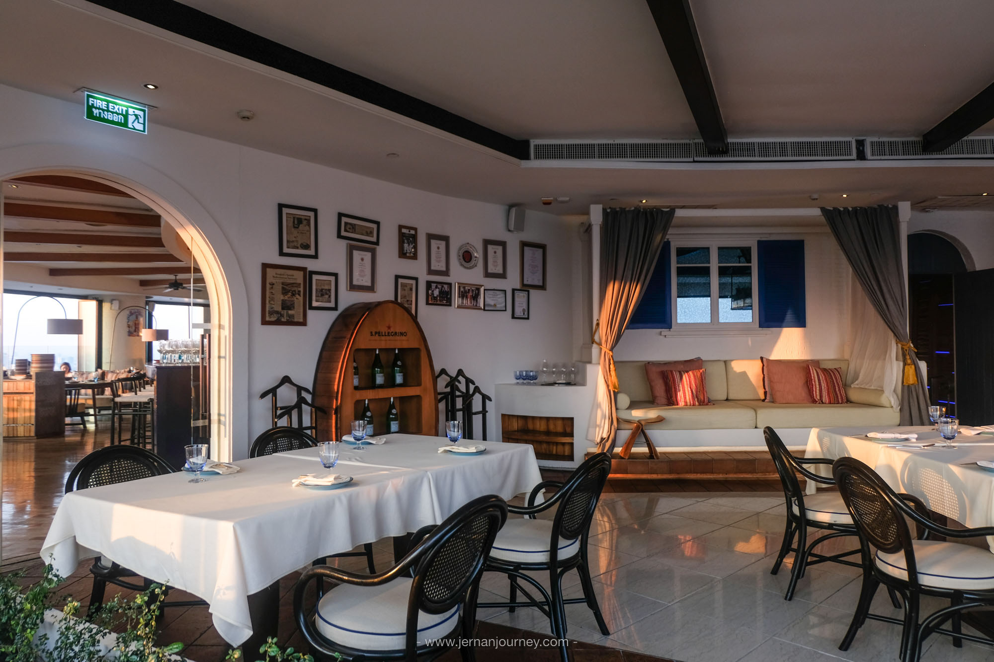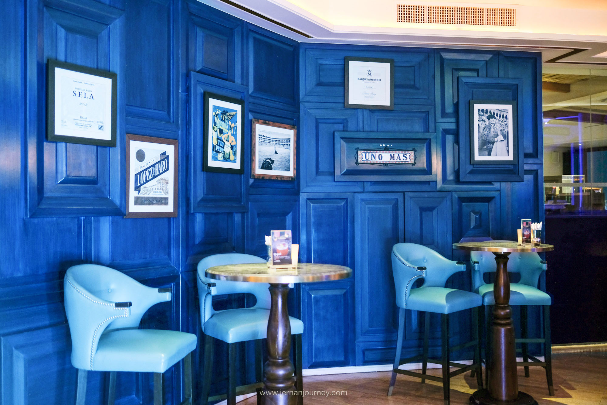 ภายในห้องอาหารมีแบ่งออกเป็นหลายโซน เข้ามาถึง จะเจอ Wine Cellar สุดอลังการอยู่หลังบาร์ เป็นอย่างแรก ตามด้วยมุมที่ตกแต่งเป็นสีฟ้า–น้ำเงิน ที่ได้แรงบันดาลใจมาจากเมือง Chefchaouen เมืองเล็ก ๆ ทางตอนเหนือของประเทศ Morocco ที่เคยอยู่ในการปกครองของประเทศสเปน