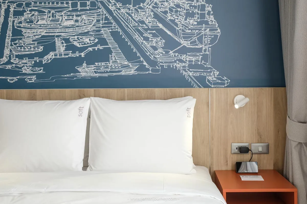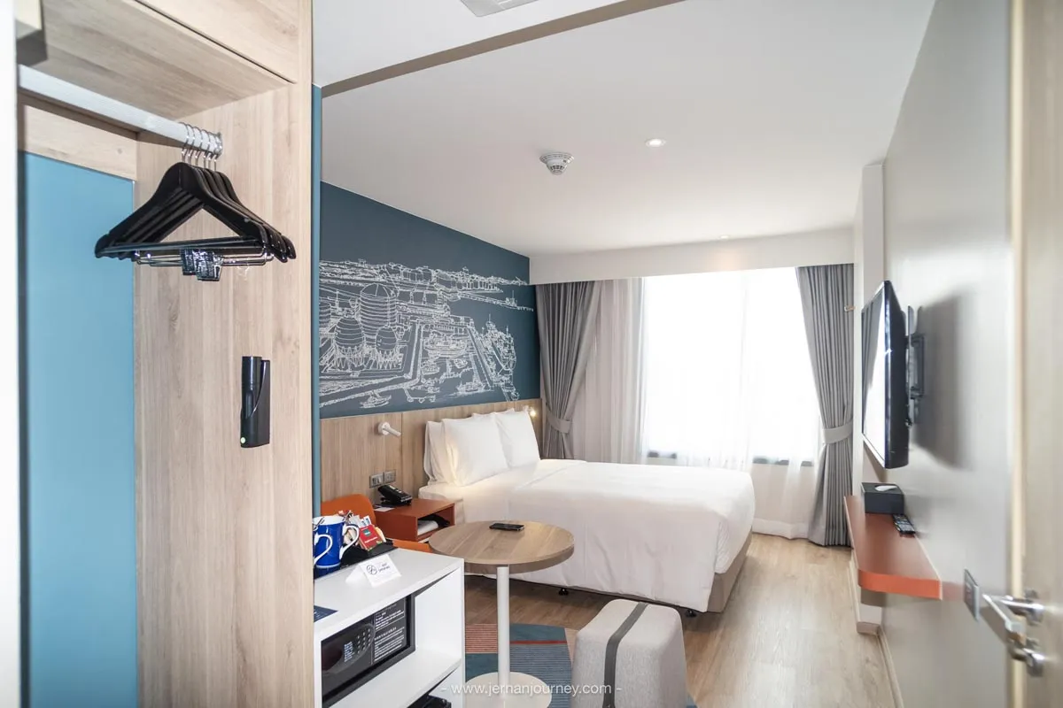 วันนี้เราพักห้อง Queen Standard ตกแต่งสบายตากับลายไม้และสีขาว ตัดกับสีส้มและฟ้าเติมความสดใส เตียงนอนสบาย ขนาดห้องไม่เล็กจนเกินไป มีโซฟาให้นั่งเล่น และโต๊ะกลมเล็กสำหรับวางของหรือนั่งทำงานได้ พร้อมวิวสระว่ายน้ำด้านล่าง