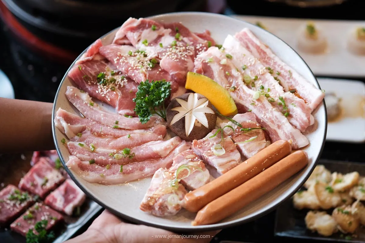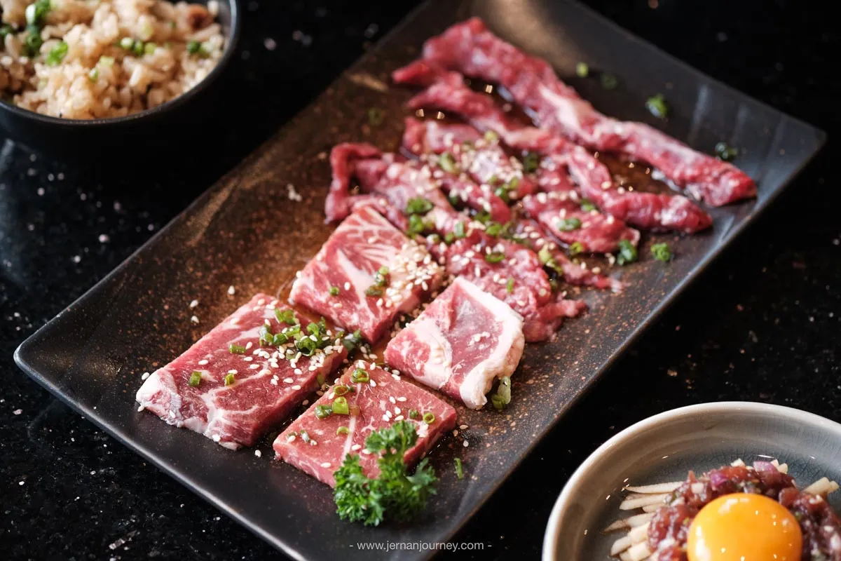 ร้านนี้บอกเลยว่าเหมาะสำหรับคนรักเนื้อ 🥩 เพราะทางร้านคัดเนื้อสุดพรีเมียมมาให้เลือกถึง 6 ชนิดด้วยกัน ทั้ง เนื้อคารูบิ เนื้อฮารามิ เนื้อชินทามะ เนื้ออุชิโมโมะ เนื้อนากะนิคุ และเนื้อโจกิวทันหรือลิ้นวัว เลือกทานพร้อมกับน้ำจิ้มที่ชอบได้เลย