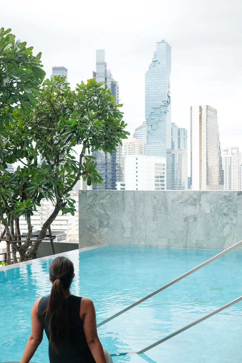 สระว่ายน้ำของที่นี่อยู่ชั้น 16 🏙️ มองเห็นวิวเมืองและตึกมหานครในมุมที่สวยมากๆ