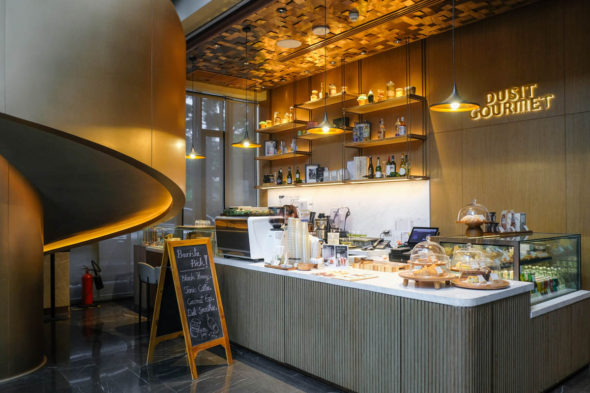 ชั้นล่างอีกฝั่งของลอบบี้ ก็มี Dusit Gourmet Deli ☕️ เป็นคาเฟ่น่ารักๆ ให้สั่งเครื่องดื่มและเบเกอรี่มานั่งทานได้